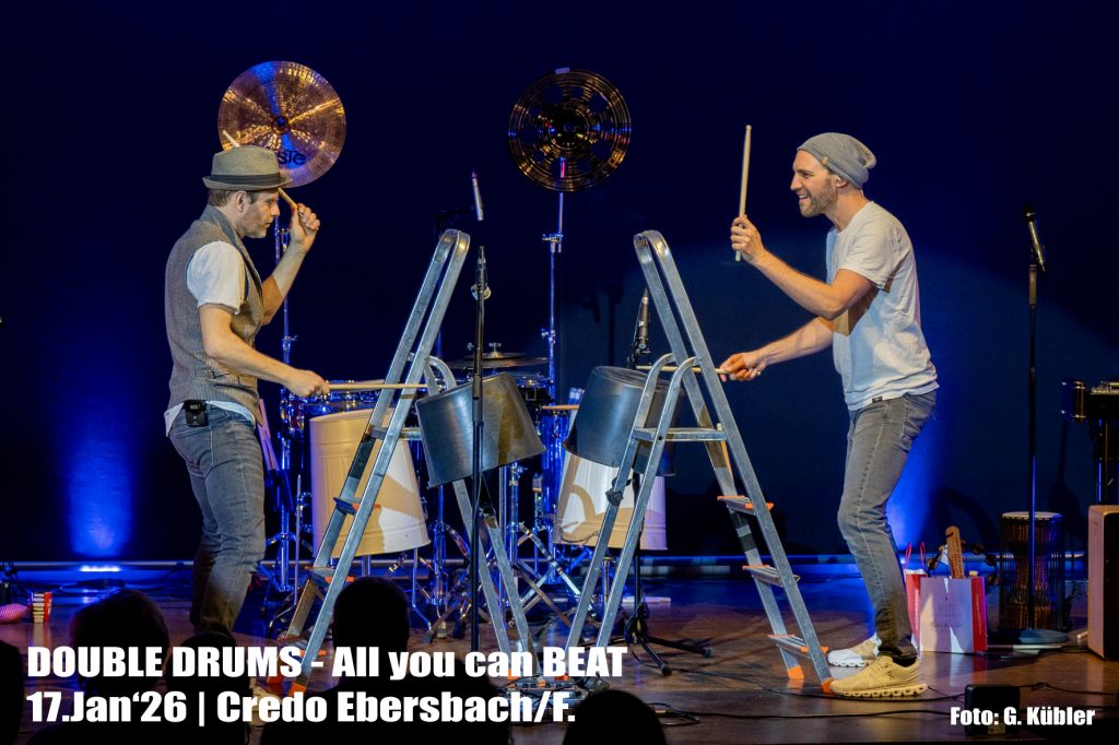 Einen grandiosen Abend erlebten die zahlreichen Gäste am Samstagabend mit DOUBLE DRUMS. Die Vollblut-Perkussionisten Alex Glöggler und Philipp Jungk aus München setzten ihr Programm „All you can BEAT“ mitreißend in Szene!