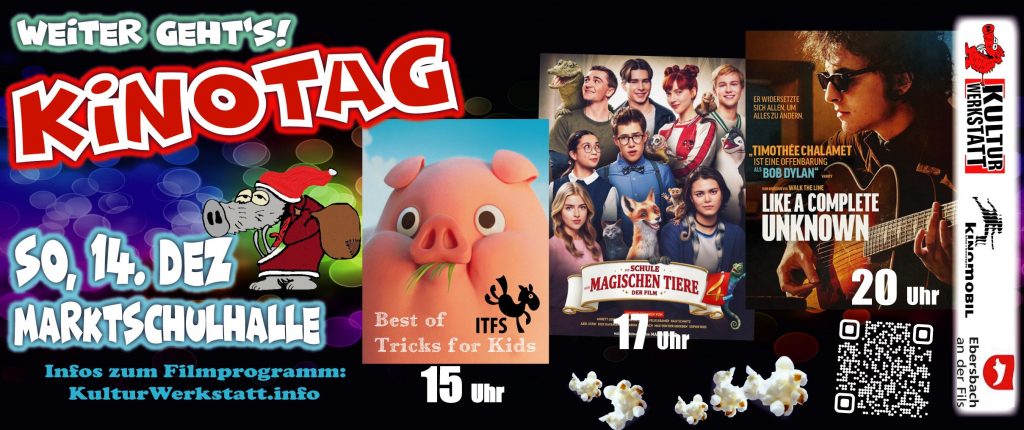 Am Sonntag, 14. April 2024 wird die Marktschulhalle endlich wieder zum Kinotempel mit drei attraktiven Filmen verschiedener Genres. Wir freuen uns, dass die Eintrittspreise unseres neuen Partners sehr günstig sind. Natürlich werden wir unseren Kino-Kiosk mit leckeren Getränken, Knabbereien und frischem Popcorn ebenso wiedereröffnen!