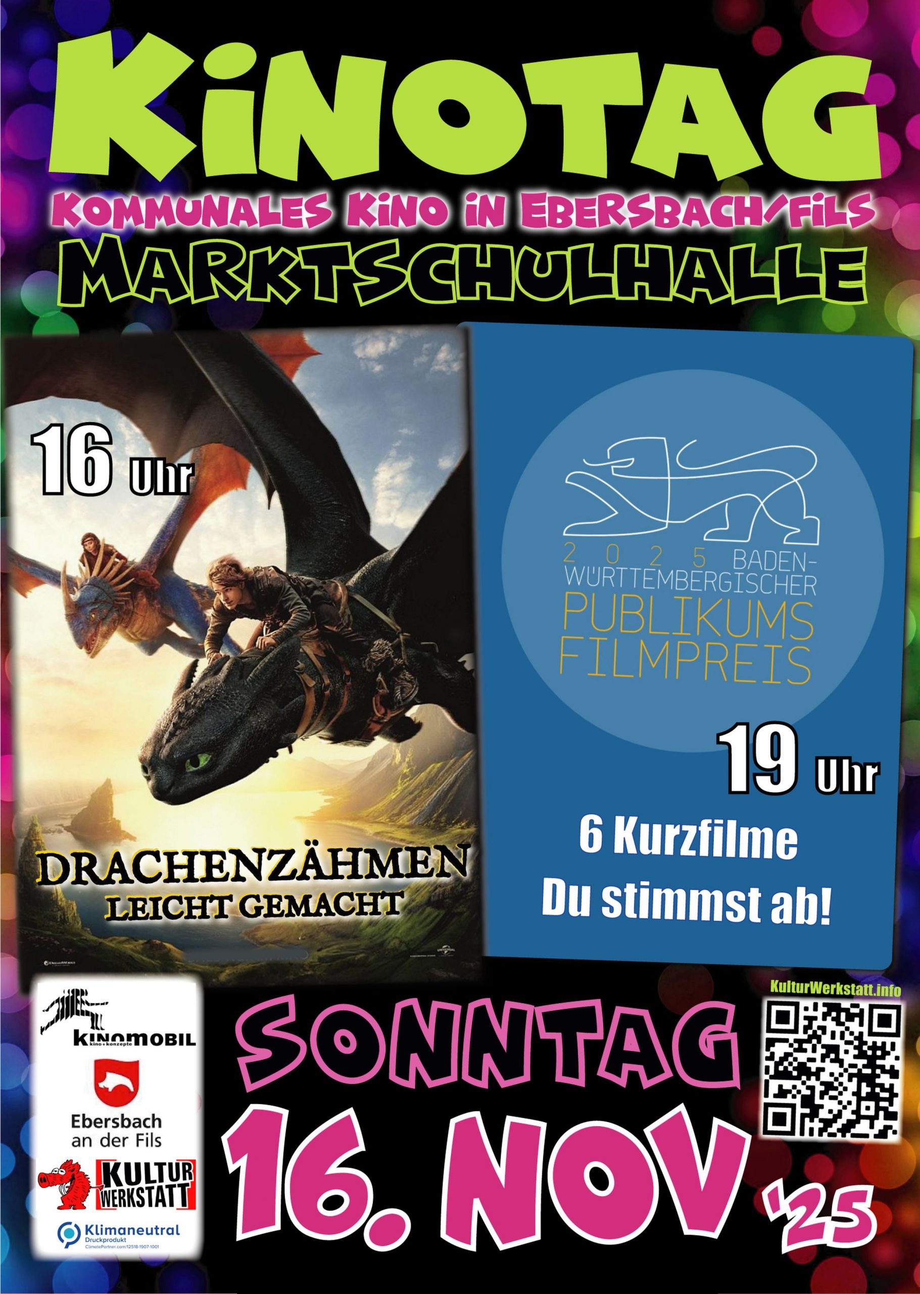 Der nächste Kinotag am 16. November 2025 bietet nicht nur einen tollen Film, ausgezeichnete Vorführtechnik und frisches Popcorn, sondern erstmals auch die Filmschau ausgewählter Kurzfilme. Das Publikum stimmt im Anschluss über die Lieblingsfilme ab ist somit Teil des Baden-Württembergischen Filmpreises 2025!
